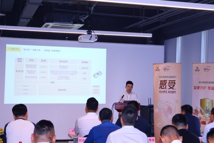 开幕式上,来宾观看第四届客服节宣传片,听取“明眸守护・服务到家”健康险、“安责守护・专业同行”安责险两款“保险+科技+服务”产品宣介,客户代表分享合作故事。