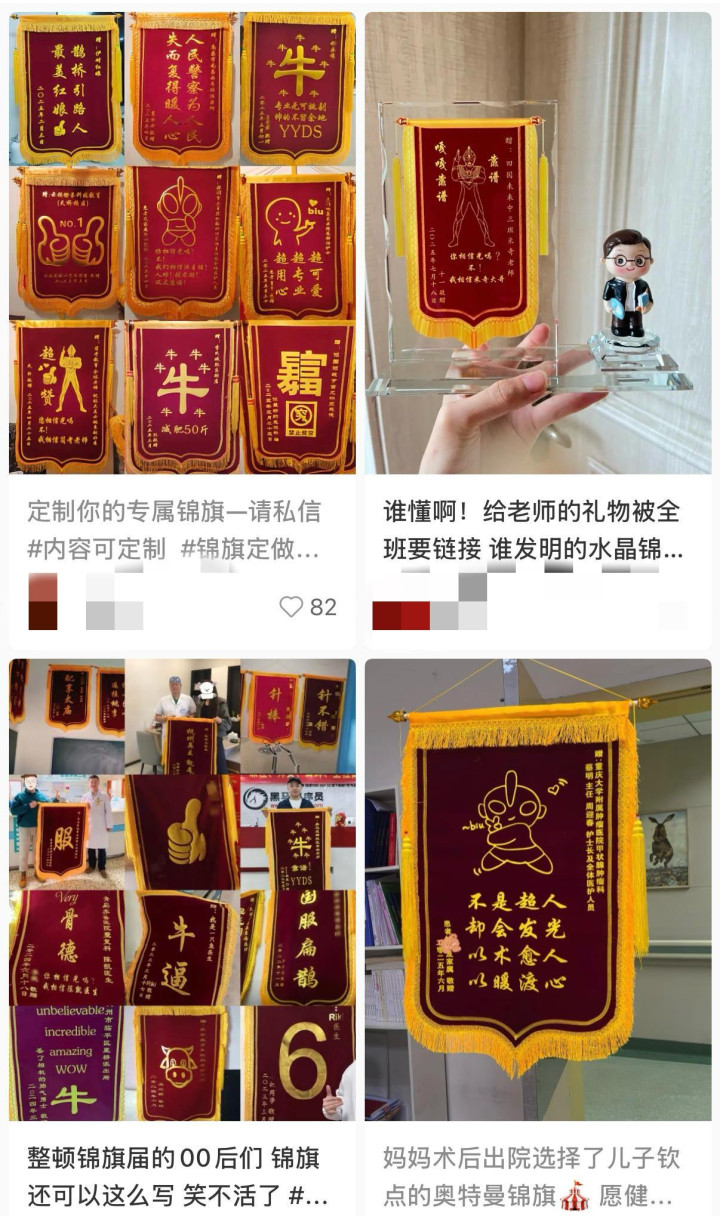 那么这些好玩又出圈的创意锦旗都从哪来?多半来自线上。