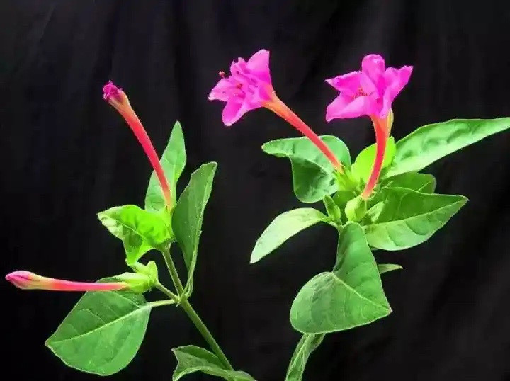 紫茉莉因花蕾形状像茉莉、花色多为紫色而得名,虽称茉莉,但与茉莉并非同种植物,花开之时,花型像一个个小喇叭,甚是可爱。小时候,我常摘去基部花管,抽出花蕊,含在唇间当小喇叭吹,会吹出清脆的鸣声。
