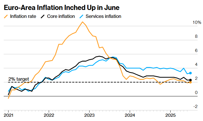 早些时候的数据显示,欧元区物价涨幅自今年 6 月(年初以来)首次出现加快态势,且与欧洲央行 2%的目标水平相符。欧洲央行工作人员认为,通胀率在 2026 年低于该水平后,将在中期稳定在这一水平。